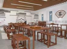 精雕細琢的古色課桌,教室四周滿墻古色裝幀的壁..